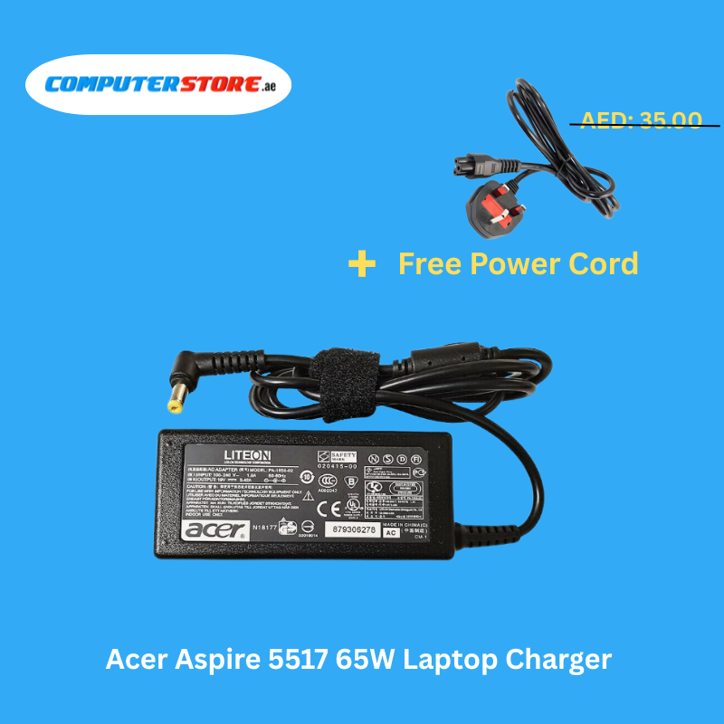 High-Quality Acer Aspire 5517 65W Laptop Charger, ensuring steady 19V output with 3.42A current for reliable, safe, and efficient power delivery.