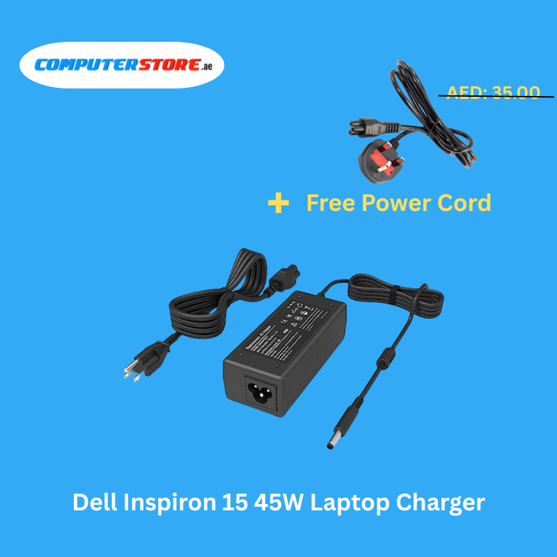 Trusted Dell Inspiron 15 45W Laptop Charger with a free power cable, delivering reliable 19.5V output with 2.31A current for smooth, safe, and efficient everyday use.