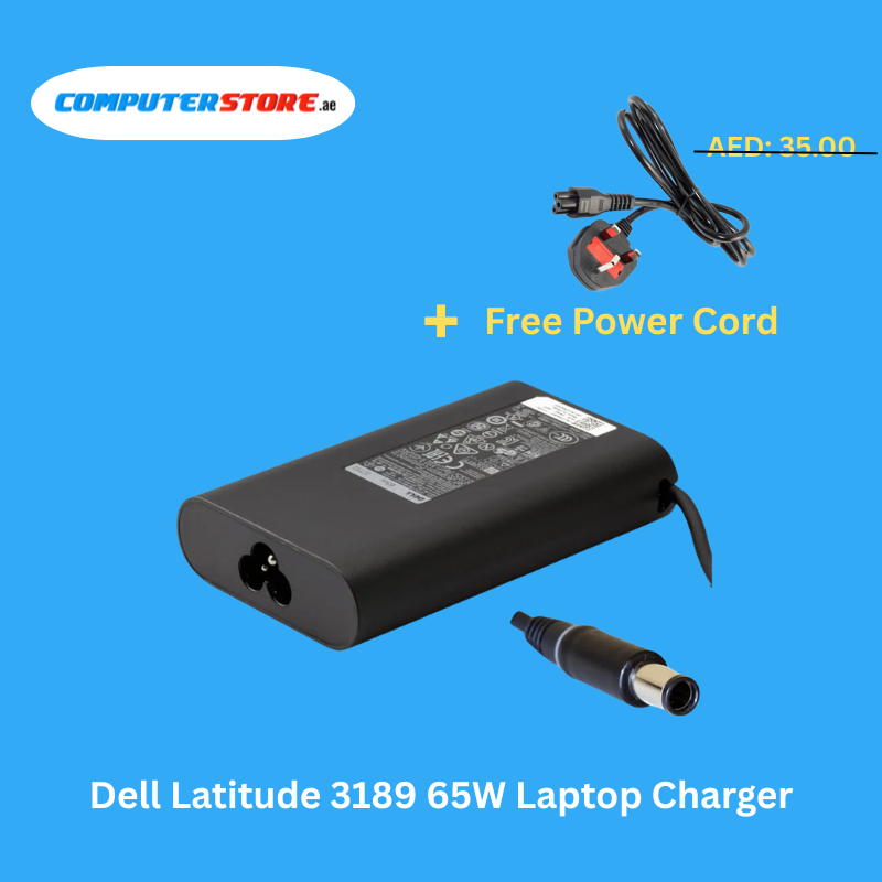 Efficient Dell Latitude 3189 65W Laptop Charger with a free power cable, supporting 19.5V and 3.34A output for reliable daily use.