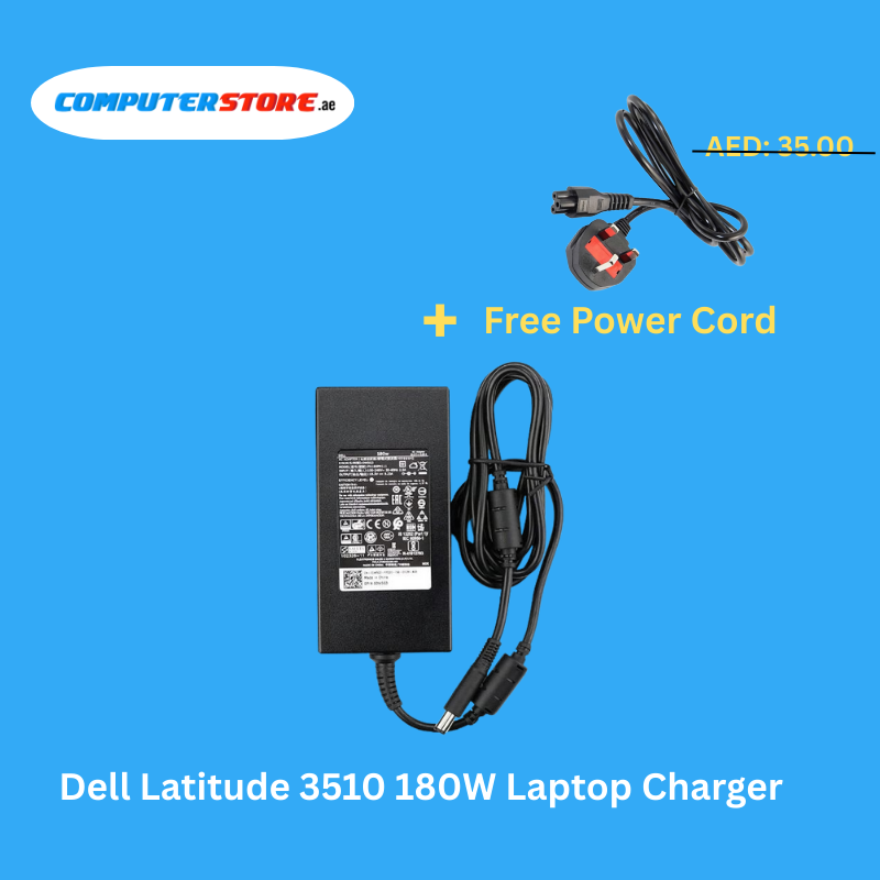 Reliable Dell Latitude 3510 180W Laptop Charger with a free Power Cable, delivering stable 19.5V and 9.23A output for fast, safe, and efficient charging.