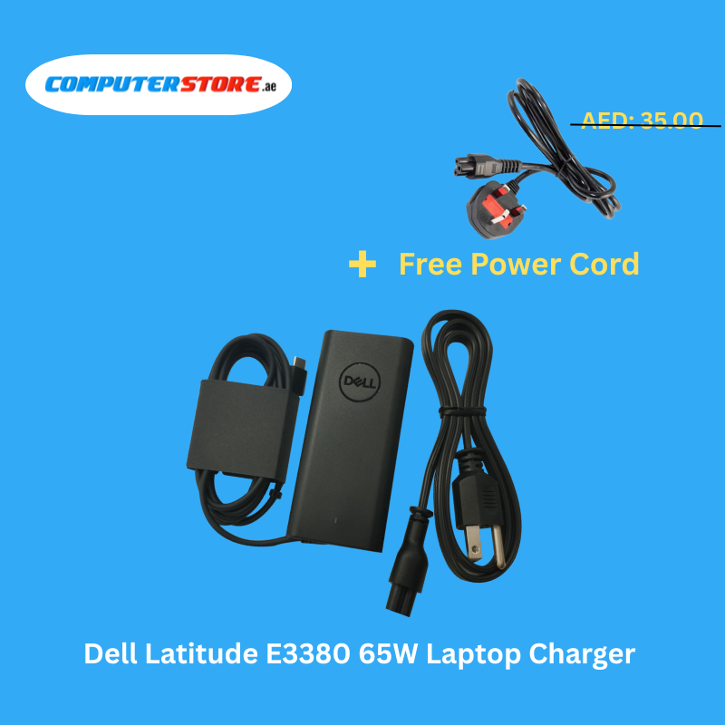Trusted Dell Latitude E3380 65W Laptop Charger with a free power cable, delivering 19.5V and 3.34A output for safe and efficient charging.