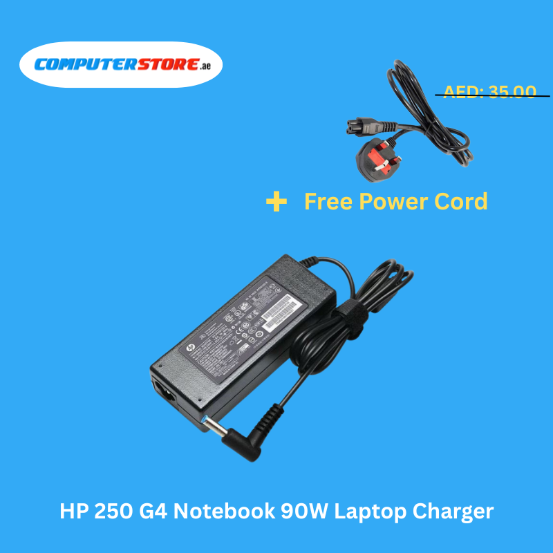 Durable HP 250 G4 Notebook 90W Laptop Charger with a free power cable, providing consistent 19.5V output with 4.62A current for smooth and secure operation.