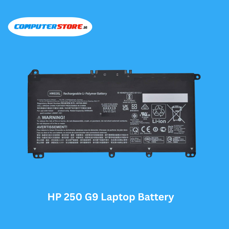 Reliable HP 250 G9 Laptop Battery, 41Wh capacity, delivering stable 11.55V output for durable, safe, and efficient power.