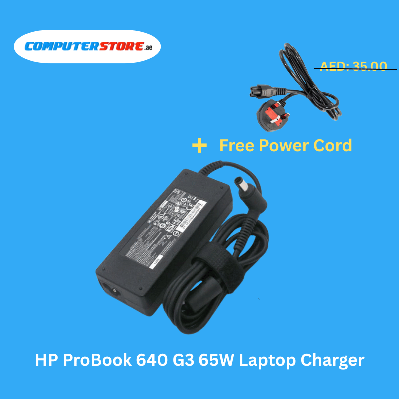 High-Quality HP ProBook 640 G3 65W Laptop Charger with a free power cable, supplying a steady 19.5V output at 3.33A for reliable, safe, and efficient use.