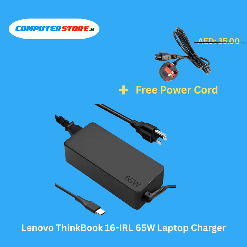 High-Quality Lenovo ThinkBook 16-IRL 65W Laptop Charger with a free power cable, ensuring steady 20V output with 3.25A current for reliable, energy-efficient operation.