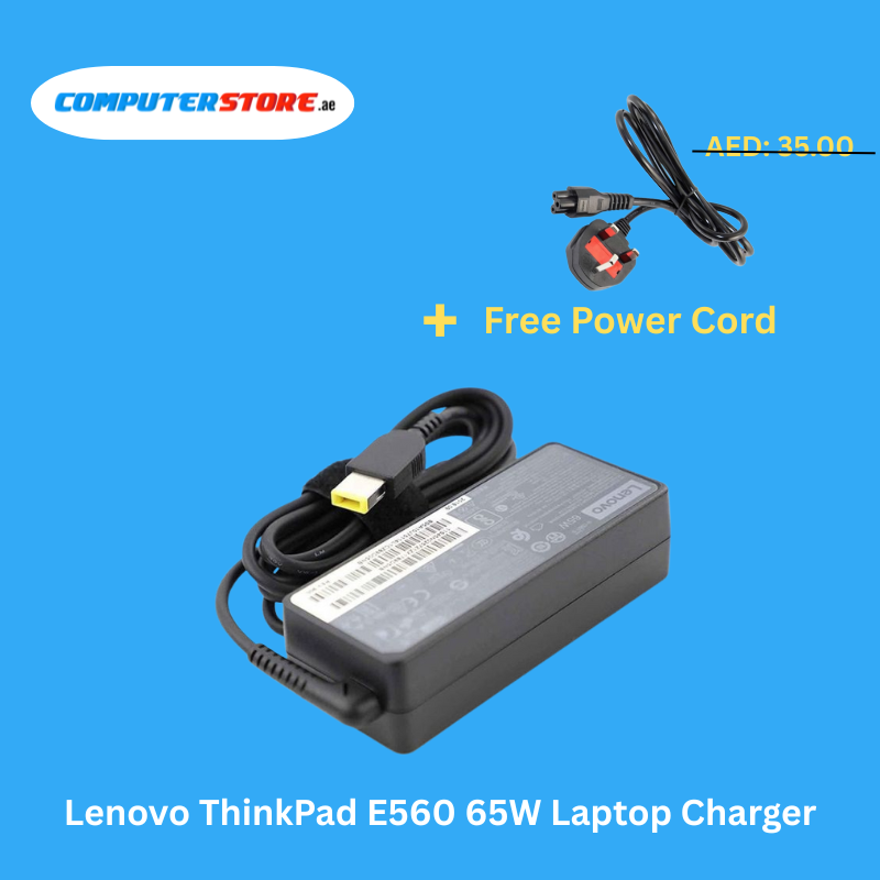 Trusted Lenovo ThinkPad E560 65W Laptop Charger with a free power cable, offering 20V and 3.25A output for reliable charging.