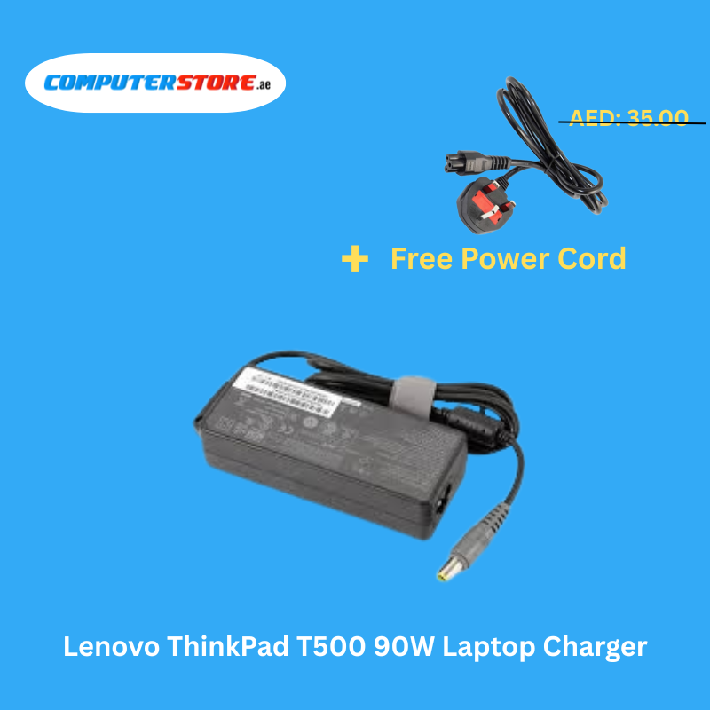 Reliable Lenovo ThinkPad T500 90W Laptop Charger with a free Power Cable, delivering stable 20V and 4.5A output for fast, safe, and efficient charging.