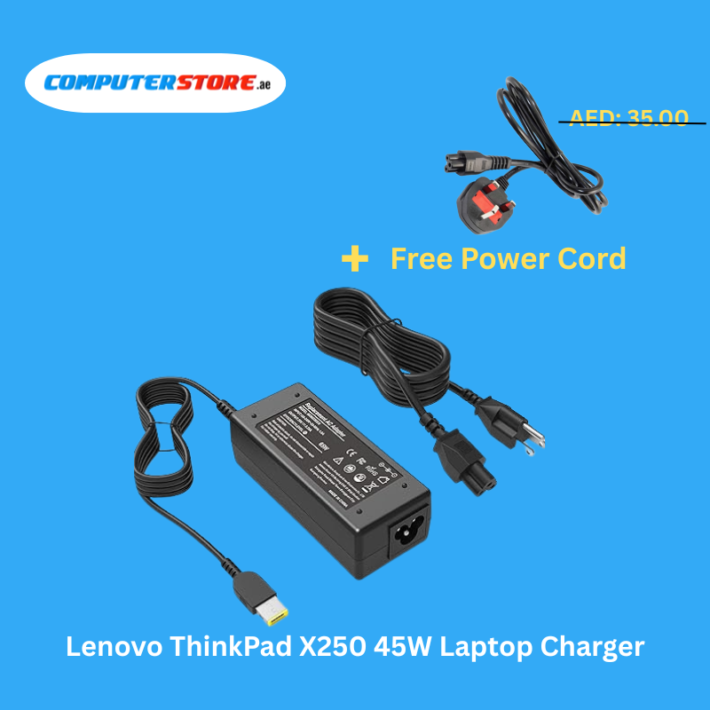 Durable Lenovo ThinkPad X250 45W Laptop Charger with a free Power Cable, delivering stable 20V and 2.25A output for fast, safe, and efficient charging.
