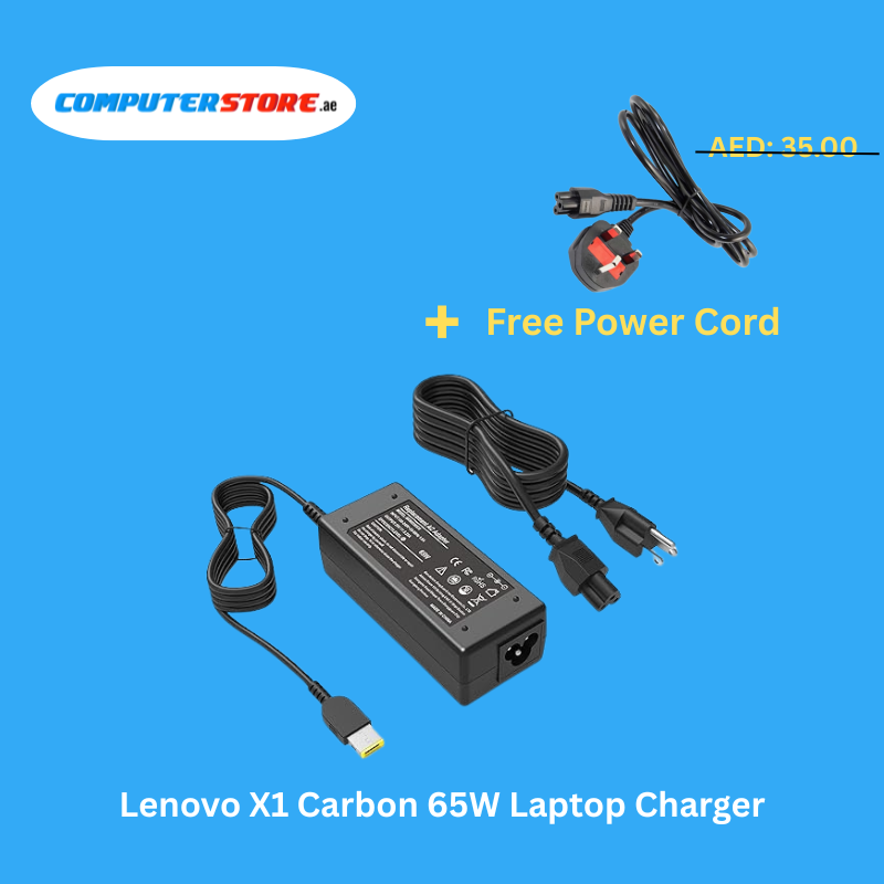 Reliable Lenovo X1 Carbon 65W Laptop Charger with a free power cable, providing 20V and 3.25A output for efficient and stable performance.