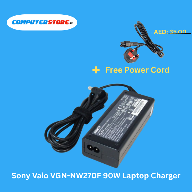 Reliable Sony Vaio VGN-NW270F 90W Laptop Charger with a free power cable, delivering stable 19.5V and 4.74A output for fast, safe, and efficient charging.